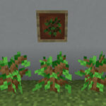 オークの苗木を草ブロックに植えて一定時間が経過するとオークの葉を作る事ができます。